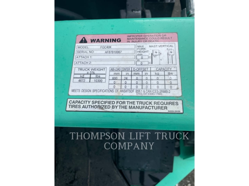 Used Forklifts 2018 Mitsubishi FGC40K Print email [#1572] Created with Sketch. c Email Hours: 3438 Rating: Good Serial Num: AF87B10067 Phone: (833) 295-4075 Contact: Benjamin Hudson Request a Quote